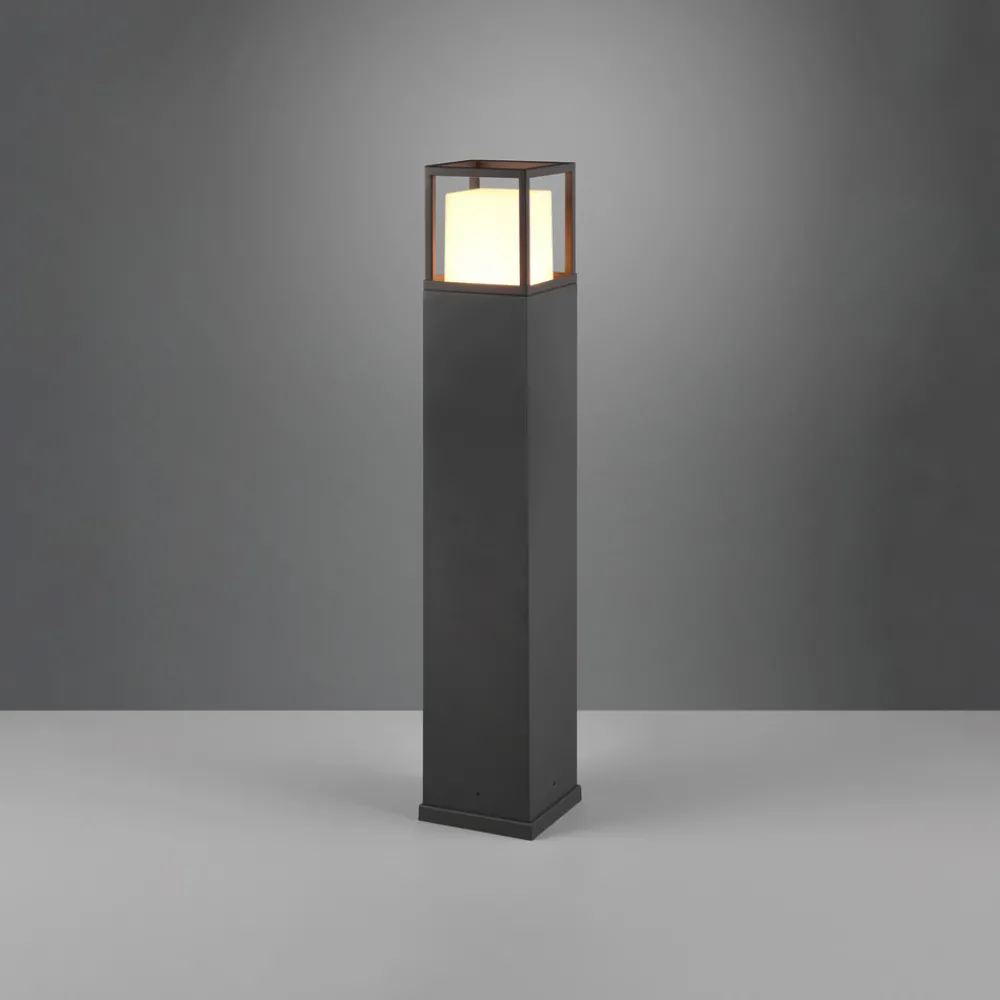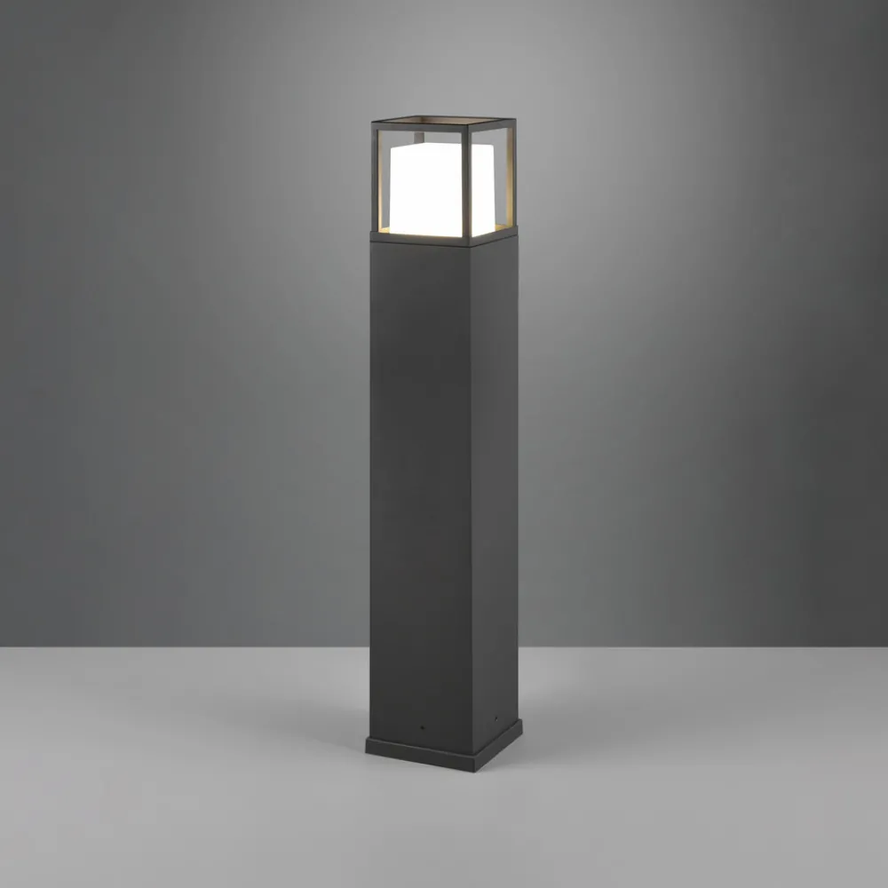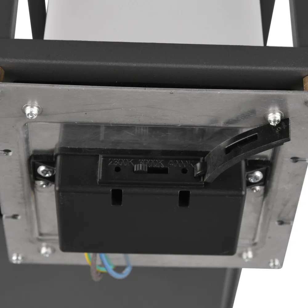 Huset til LED-gatelampen Witham er laget av trykkstøpt aluminium og er matt svartlakkert. Den kubiske diffusoren er opalhvitt, noe som gir blendingsfri belysning. Fargetemperaturen kan også endres via en bryter på rammen. Her kan du velge mellom to varmhvite lysfarger (2300 K / 3000 K) og universalhvit lys (4000 K).