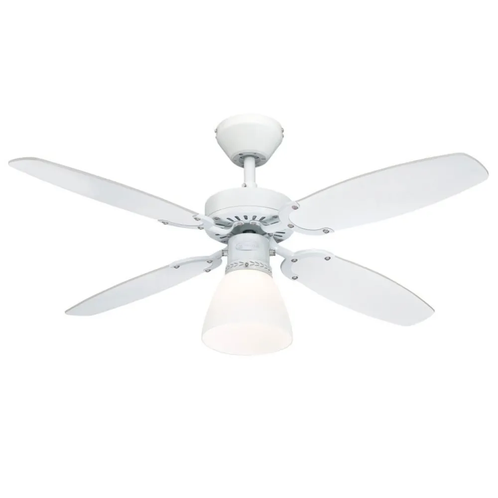 Takvifte Capitol med rent design – vendbare vifteblad i hvitt og bøk