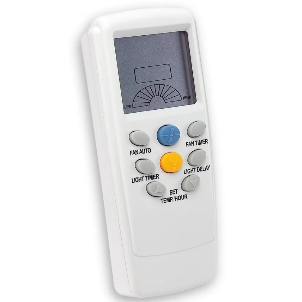 Enkel styring av takvifter med radiofrekvensfjernkontrollenHenvisning: Når du velger fjernkontroll, må du kontrollere hvilke fjernkontroller som er lagret som enhetskompatible i tilbehøret til den kjøpte viften. Denne fjernkontrollen er praktisk utstyrt og kan brukes til å styre Westinghouse-viftemodeller (unntatt Hugger). Den har en av/på-bryter som kan betjenes i tre hastigheter samt en lysbryter (uten dimmefunksjon) og er utstyrt med et LCD-display. Et veggfeste følger med, slik at fjernkontrollen alltid er lett tilgjengelig når du trenger den. Batterier (4 x 1,5 V AAA) følger ikke med – kan kjøpes som tilbehør). Den nødvendige mottakerdelen, som må ettermonteres for hver vifte, er også inkludert i leveransen. Et vilkårlig antall vifter kan styres sammen, forutsatt at de er innenfor rekkevidde og at det er stilt inn en enhetlig frekvens.
