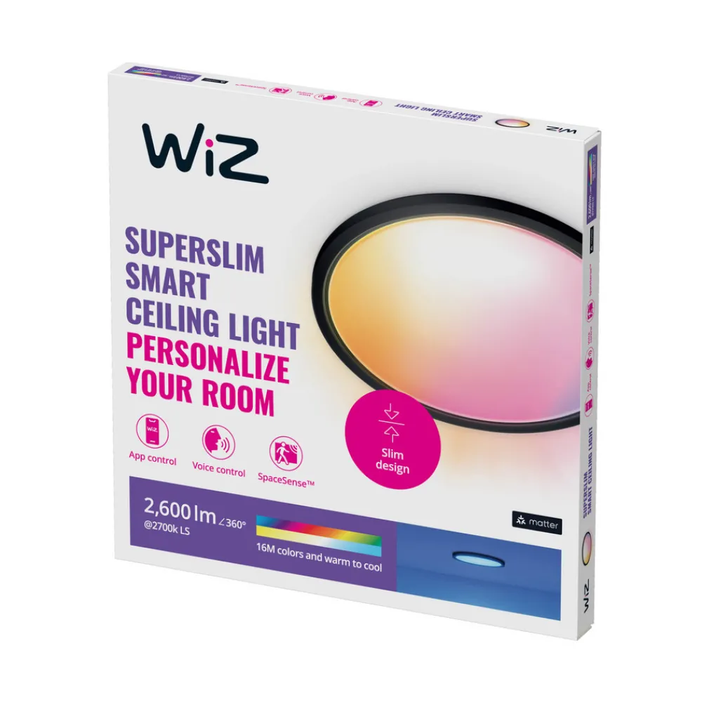 WiZ SuperSlim LED-taklampe RGBW Ø42cm svart Clearance